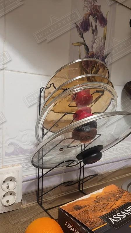 Металлический держатель под крышки предназначен для хранения крышек от сковородок и кастрюль.