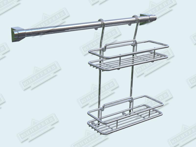 Главная / Продукция / Хозтовары / Кухонные принадлежности / На рейлинг / Прямая разборная полка на рейлинг 2х ярусная