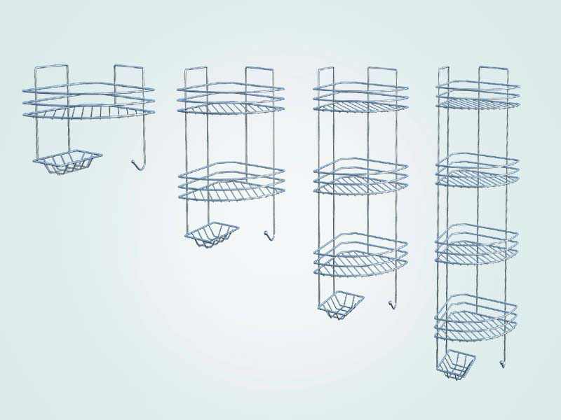Металлическая навесная угловая полка в ванную комнату сделана из проволки. Можно заказать с 1/2/3/4-мя ярусами. Предназначена для хранения шампуней и других мелочей. Крепится на саморезы (идут в комплекте). Уникальна за счет отдельной мыльницы и дополнительно крючка для мочалки.