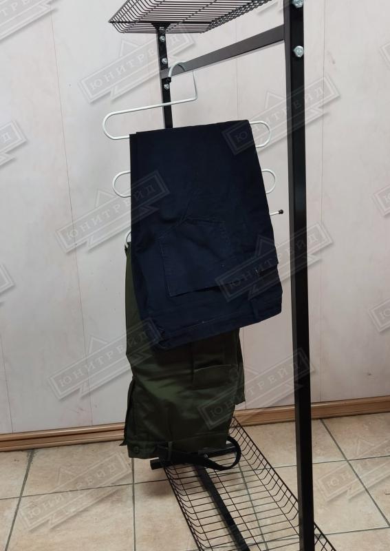 Металлическая вешалка подойдет для хранения брюк, штанов в шкафу. Многоуровневая. На краях установлены колпачки, для того, чтобы вешалка не цеплялся и не царапала предметы вокруг. Габариты представлены в таблице: