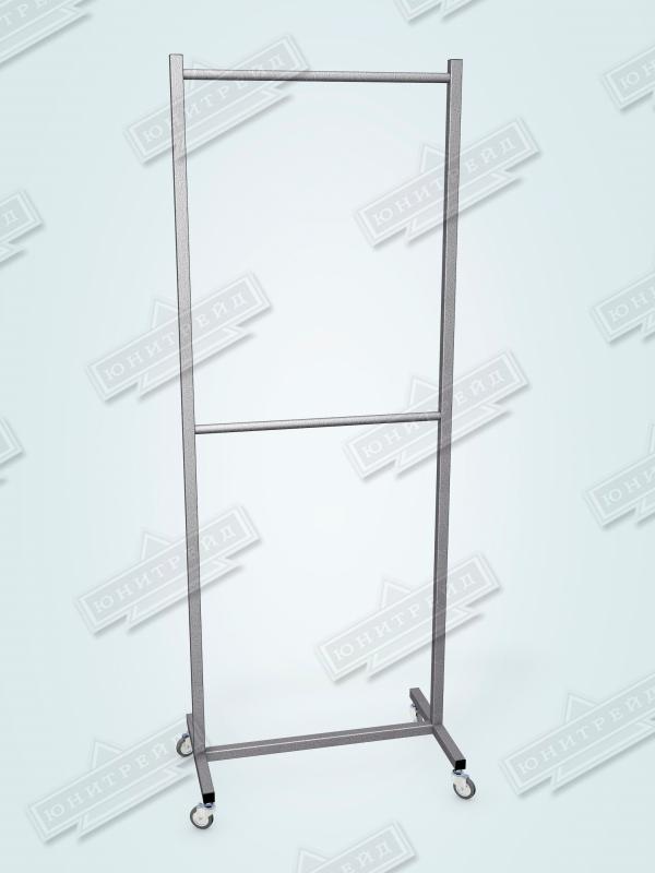 Вешало 2-х ярусное перекатное. Подкатное вешало для одежды, двухярусное металлическое на колесах.