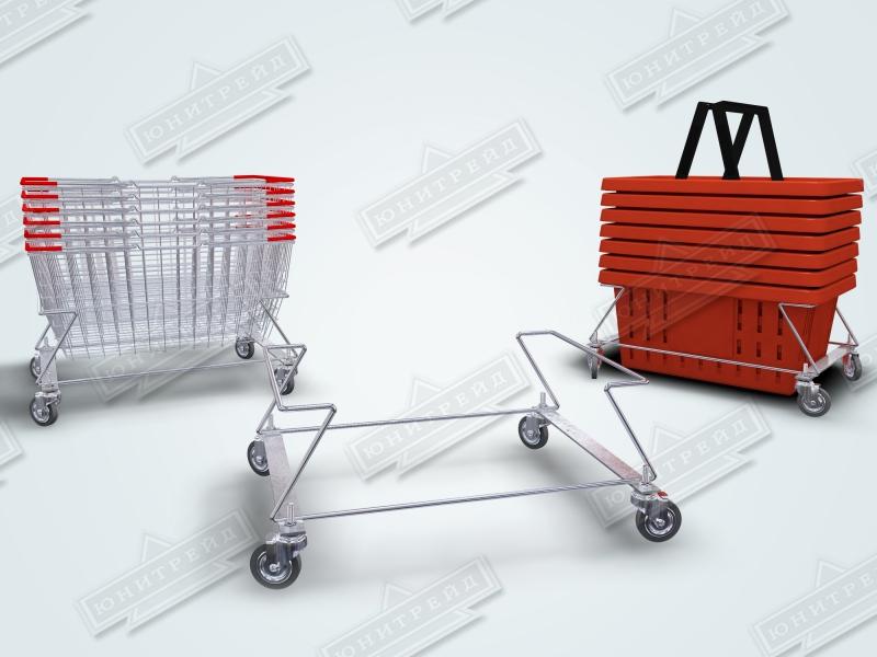 Главная / Продукция / Торговое оборудование / Корзины подставки тележки для торгового зала / Подставки под корзины покупательские на колёсах